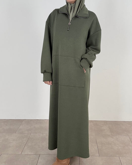 Khaki zipped dress